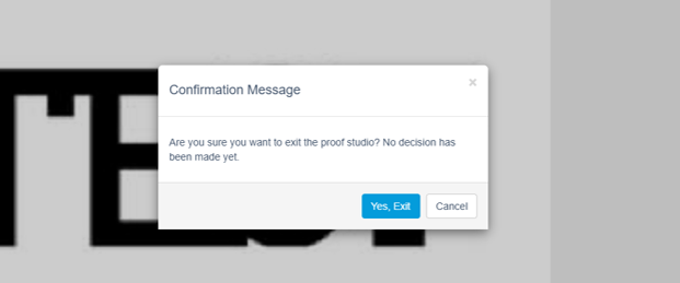“Are you sure you want to exit Proof Studio? No decision has been made yet.”