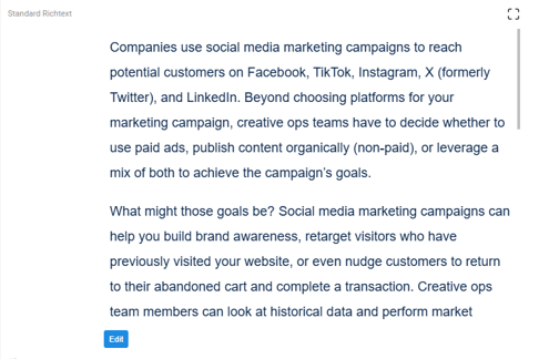 These enhancements apply across all areas where the Rich Text Editor is used, including Collections, Entity, Campaign details, and more.